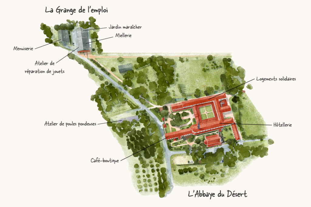 L’Abbaye du Désert est un lieu d’inclusion sociale, qui s’engage en faveur de l’écologie. D’importants travaux d’isolation ont été menés sur le site, ainsi que la mise en place de pompes à chaleur qui garantissent une énergie propre.
